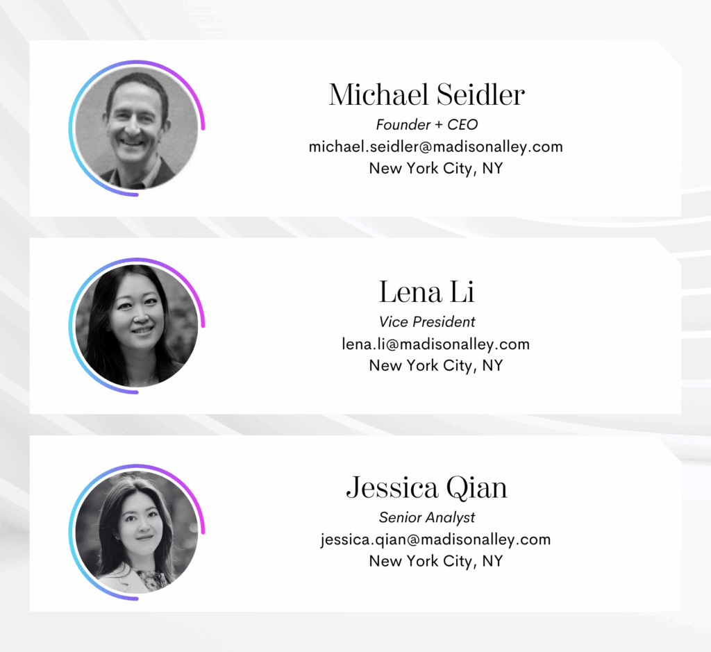 Madison Alley's deal team was led by Founder & CEO Michael Seidler with key support from Veersen Ghatge, Lena Li and Jessica Qian.