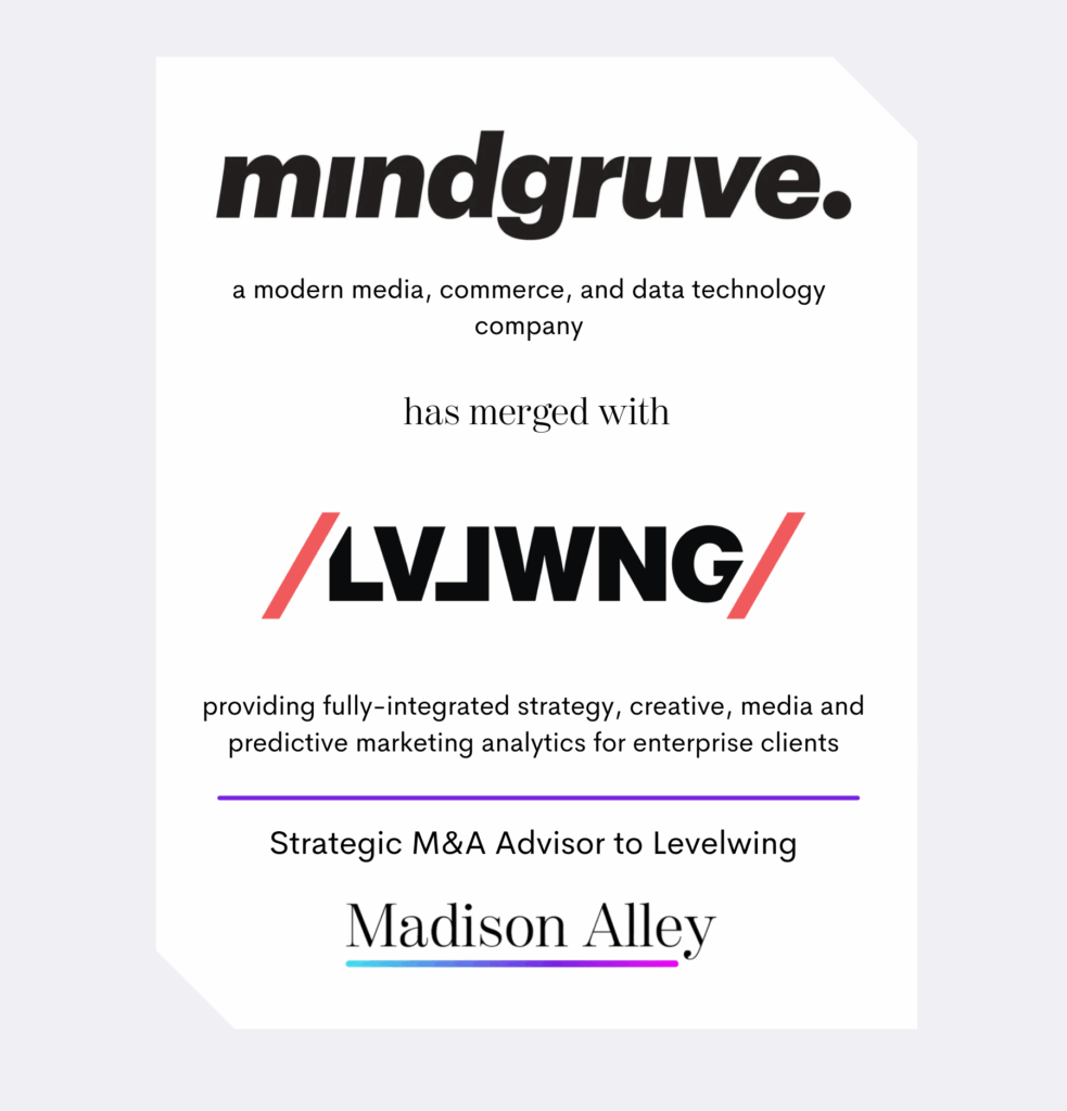 New York, NY (June 25, 2025) - Madison Alley Global Ventures, the preeminent Strategic Corporate Development, M&A and capital advisory firm for the most innovative marketing, media, commerce and technology companies, today announced that it served as exclusive M&A advisor to Levelwing on its strategic combination with Mindgruve.
