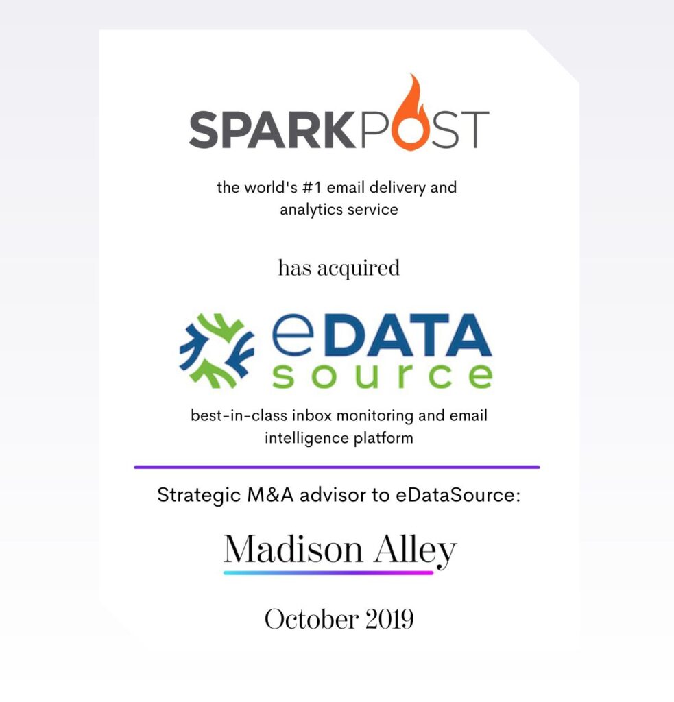 The Madison Alley team, led by Managing Directors Boris Fridman and Tom Crowley, served as the exclusive strategic M&A advisor to eDataSource on its sale to SparkPost.